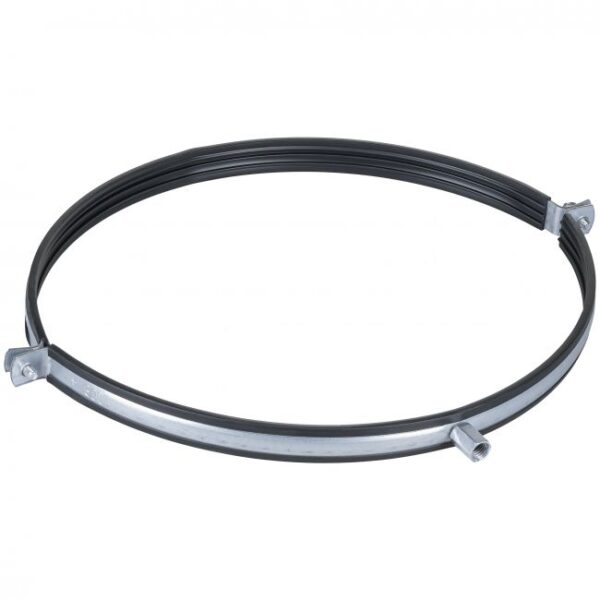 Obejma GOSHE z amortyzatorem gumowym 160-OC to element montażowy przeznaczony do stabilnego podwieszania rur wentylacyjnych o średnicy 160 mm, który pomaga redukować drgania i hałas w instalacji.