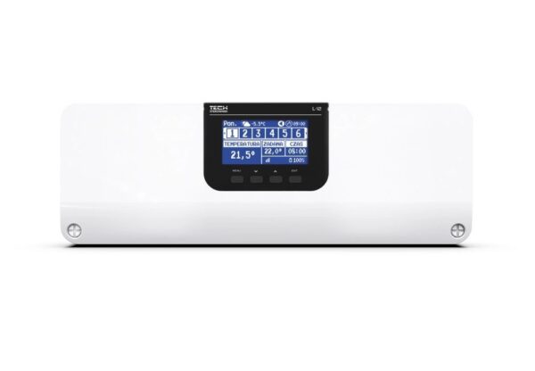 Tech L-12 – listwa sterująca do systemu ogrzewania strefowego, obsługuje do 12 stref. Współpracuje z siłownikami i sterownikami pokojowymi. Profesjonalne zarządzanie temperaturą w całym domu.